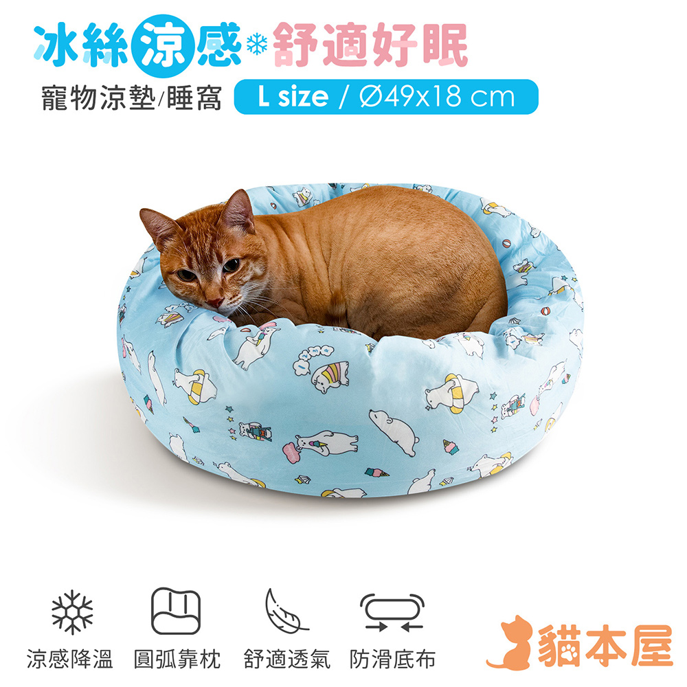 貓本屋 涼感降溫 冰絲寵物涼墊 睡窩 (L號) 藍北極熊