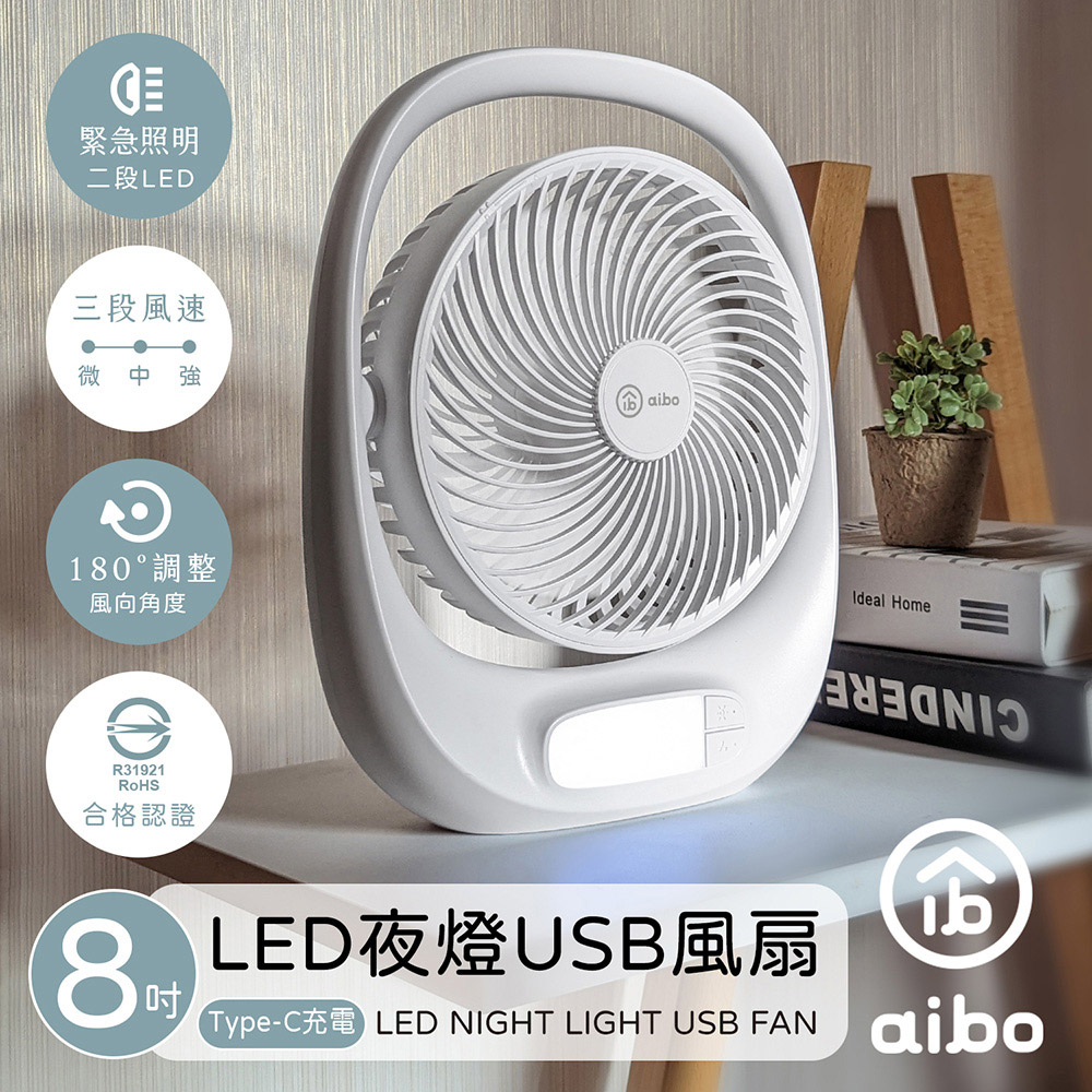 aibo 8吋多功能 充電式USB風扇(LED夜燈) 白色 HA-FAN1131 | 誠品線上