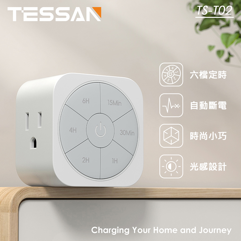 內容簡介 TESSAN 六檔定時插頭★設定簡易使用方便★--節能可靠的定時插座,輕鬆節約能源--.尺 寸:約 60 x 60 x 60 mm.額定電壓:AC 125V~.額定容量:MAX 1650W.額定頻率:60Hz.額定電流:MAX 15A.最短設定時間:15分鐘.最長設定時間:6小時.插 座:3P AC插孔 x1.材 質:防火塑膠(PC) 銅.適用環境:溫度 0℃~40℃.檢磁證號:依據經濟部標準檢驗局公告,轉接器(包括具備定時控制、聲音控制…) 自114年1月1日起實施輸入及國內產製商品需有檢磁驗證(BSMI)。 本產品為114年1月1日之前進口的貨物,無需BSMI檢磁驗證。。.包裝內含:六檔定時插頭 x1、產品手冊 x1.商品保固:自購買日起,本產品提供12個月保固服務,若為天災、蟲(鼠)害、 人為或產品匹配性因素,未依規定使用,恕不免費服務。.產 地:中國※以上資料為原廠提供之參考資料,如有錯誤,以原廠公布的資訊為準。※依據經濟部標準檢驗局公告,轉接器(包括具備定時控制、聲音控制…) 自114年1月1日起實施輸入及國內產製商品需有檢磁驗證(BSMI)。※本產品為114年1月1日之前進口的貨物,無需BSMI檢磁驗證。注意事項:.本產品最高承載額定電容量為15A AC125V 1650W,請勿使用AC125V以上電壓。.請勿使電線纏繞或打結,以免在插座區域過熱時無法及時散熱。.勿用潮濕的手接觸插頭、插座、電線,以免觸電。.勿在潮濕的地方存放或使用,以免觸電,發生火災。.必須正確地接在有接地線的插座上使用。.【緊急處理方式】產品使用過程中,若出現嚴重發熱或異味產生…等, 異常現象發生時,應立即拔掉插頭以停止使用。.自購買日起,本產品提供12個月保固服務,若為天災、蟲(鼠)害、人為或 產品匹配性因素,未依規定使用,恕不免費服務。.依據經濟部標準檢驗局公告,轉接器(包括具備定時控制、聲音控制…) 自114年1月1日起實施輸入及國內產製商品需有檢磁驗證(BSMI)。 本產品為114年1月1日之前進口的貨物,無需BSMI檢磁驗證。