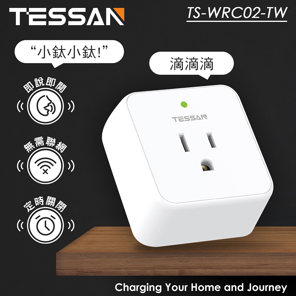 內容簡介 TESSAN 語音控制插座★即說即開,使用簡易★--無需聯網語音控制,輕鬆節約能源--.尺 寸:約 56 x 70 x 40 mm.額定電壓:AC 125V~.額定容量:MAX 1250W.額定電流:MAX 10A.插 座:3P AC插孔 x1.材 質:防火塑膠(PC) 銅.適用環境:溫度 0℃~40℃.檢磁證號:依據經濟部標準檢驗局公告,轉接器(包括具備定時控制、聲音控制…) 自114年1月1日起實施輸入及國內產製商品需有檢磁驗證(BSMI)。 本產品為114年1月1日之前進口的貨物,無需BSMI檢磁驗證。.包裝內含:語音控制插座 x1、產品手冊 x1.商品保固:自購買日起,本產品提供12個月保固服務,若為天災、蟲(鼠)害、 人為或產品匹配性因素,未依規定使用,恕不免費服務。.產 地:中國※以上資料為原廠提供之參考資料,如有錯誤,以原廠公布的資訊為準。※依據經濟部標準檢驗局公告,轉接器(包括具備定時控制、聲音控制…) 自114年1月1日起實施輸入及國內產製商品需有檢磁驗證(BSMI)。※本產品為114年1月1日之前進口的貨物,無需BSMI檢磁驗證。注意事項:.使用前請詳閱產品內附操作手冊。.請勿遮擋插座頂部麥克風孔。.為了更好地使用語音控制插座,請儘量在距離插座3m範圍內清晰地發出語音命令。.請使用標準國語發音操作聲控插座,聲音需大於65分貝。.請在相對安靜的環境中使用語音控制,當環境聲音超過48分貝時,可能會造成 無法識別或執行語音命令。.請避免讓麥克風進水,會導致插座損壞。.該插座具有記憶功能,如果發生電源故障,重新插拔後,插座將恢復到斷電前狀態, 定時關閉功能將自動取消。.本產品最高承載額定電容量為15A AC125V 1650W,請勿使用AC125V以上電壓。.請勿使電線纏繞或打結,以免在插座區域過熱時無法及時散熱。.勿用潮濕的手接觸插頭、插座、電線,以免觸電。.勿在潮濕的地方存放或使用,以免觸電,發生火災。.必須正確地接在有接地線的插座上使用。.【緊急處理方式】產品使用過程中,若出現嚴重發熱或異味產生…等, 異常現象發生時,應立即拔掉插頭以停止使用。.自購買日起,本產品提供12個月保固服務,若為天災、蟲(鼠)害、人為或 產品匹配性因素,未依規定使用,恕不免費服務。.依據經濟部標準檢驗局公告,轉接器(包括具備定時控制、聲音控制…) 自114年1月1日起實施輸入及國內產製商品需有檢磁驗證(BSMI)。 本產品為114年1月1日之前進口的貨物,無需BSMI檢磁驗證。