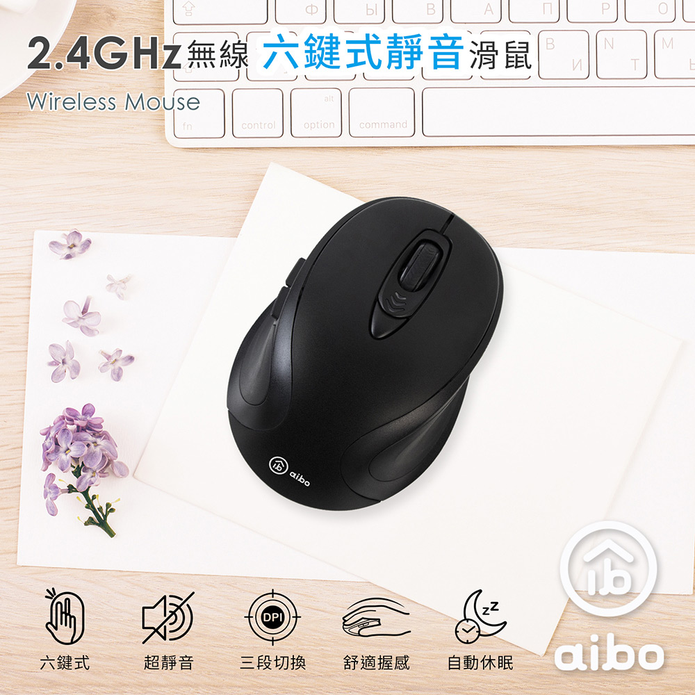 aibo S16 2.4G 無線六鍵式靜音滑鼠 沉穩黑