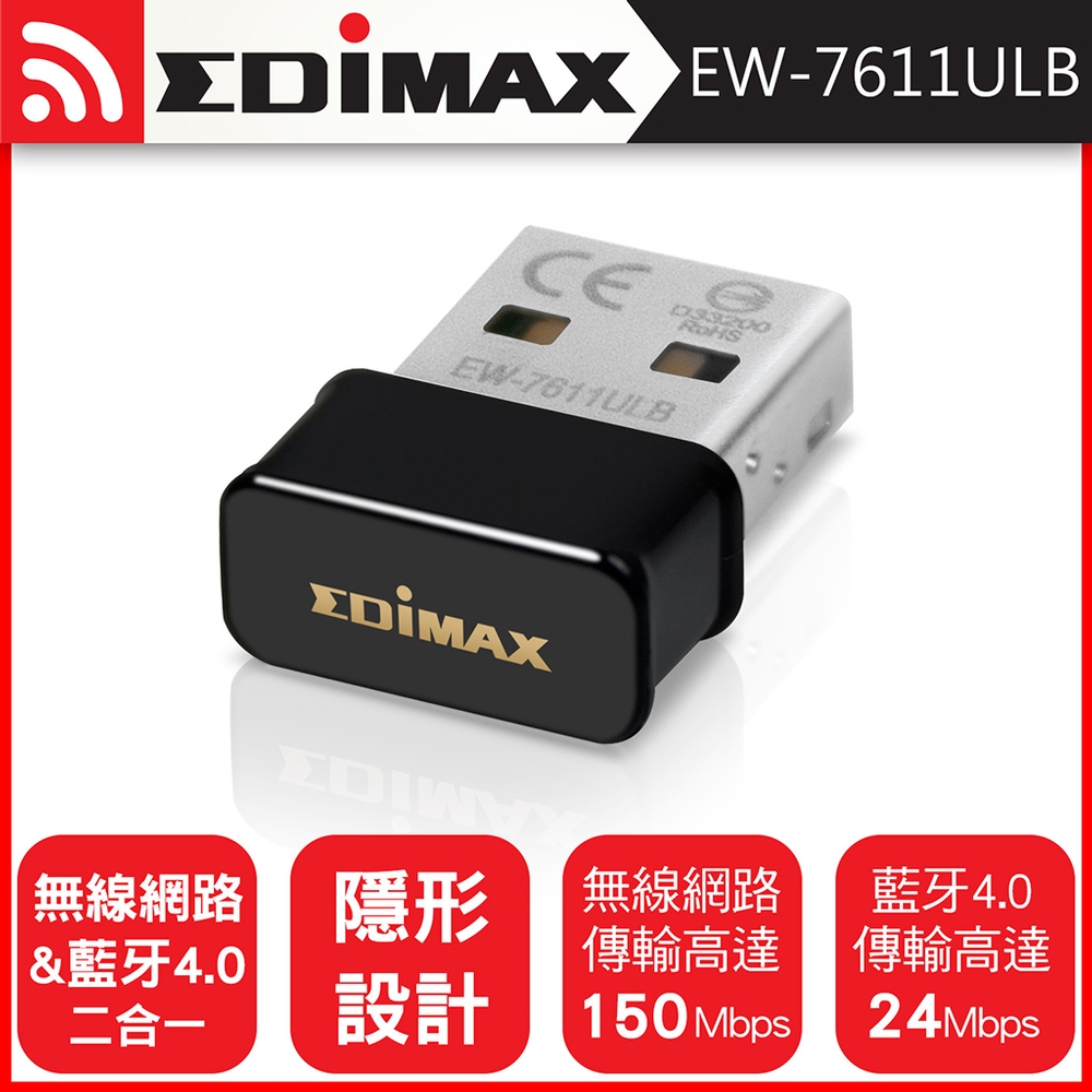 內容簡介 EDIMAX 訊舟 EW-7611ULB N150 Wi-Fi+藍牙4.0 二合一 USB無線網路卡 EW-7611ULB是一款nano尺寸具備藍牙4.0和WiFi雙模式的USB無線網路卡無線速率高達150Mbps且能使用户連接到支援藍牙4.0版本的設備如手機、平板電腦、滑鼠、鍵盤、印表機等。 EW-7611ULB支援藍牙4.0版本以及藍牙Smart Ready。並採用藍牙低功耗(BLE),即便在傳輸數據或連接設備時都是超低功耗。小巧Nano尺寸設計,您可以輕鬆將其插入不会影響周圍USB埠,同時實現WiFi和藍牙連接。 藍牙4.0 & 藍牙3.0+HS(高速)數據傳輸快8倍,高達24Mbps,支援藍牙4.0以及藍牙3.0+HS和藍牙2.1+EDR,可與絕大多數支援最新藍牙版本的設備如手機、平板電腦、滑鼠、鍵盤、印表機等設備進行無線通訊。 節能綠色WLAN & 藍牙低功耗 (BLE),採用智慧傳輸功率控制,透過距離以及CPU卸載調整傳輸輸出,有助於減少無線空閒時的功耗。支援 Wi-Fi 安全設置(WPS)無線網絡輕鬆安全配置的標準。該網卡支援WPS,您可快速設定無線加密。 ※藍牙功能不支援Mac OS系統※本產品不支援Windows XP作業系統!!商品特色: ◆符合IEEE 802.11b g n 無線網路規範,無線傳輸速率最高可達150Mbps。◆藍牙4.0 & 藍牙3.0+HS (高速率): 高達24Mbps, 8 倍於藍牙2.0 或3.0。◆智慧進階雙模藍牙4.0 LE & BR EDR。◆支援藍牙 2.1+EDR & 3.0+HS。◆輕鬆設置: 包括多語言簡易安裝指南並且兼容WPS。◆Wi-Fi 安全: 支援64 128-bit WEP, WPA , WPA2 認證。◆採用智慧節能技術: 支援QoS-WMM, WMM-節能模式和藍牙低功耗 (BLE) 。◆輕隱形工藝設計,體積極迷你,隨插即忘 注意事項: 1.包裝內不附驅動光碟,請至EDIMAX官網EW-7611ULB產品頁面, 依照您的作業系統下載安裝精靈2.藍牙功能不支援Mac OS系統3.本產品不支援Windows XP作業系統!!4.此產品無線傳輸的最大速度乃依據IEEE 802.11 b g n標準規範 實際數值資料與覆蓋範圍則依據實際網際網環境而有所不同5.EDIMAX及其相關LOGO商標為EDIMAX訊舟科技版權註冊所有 其他的小與商標亦分屬其個別公司所擁有 轉載警示: 自民國108年6月1日起(含追溯既往),鈞嵐(立嵐)企業有限公司之 商品圖片、影片或鈞嵐(立嵐)企業有限公司文字及LOGO, 任何客戶或用戶需轉載刊登任何圖片、文字、影片 皆需經過鈞嵐(立嵐)書面同意,如有需求請與鈞嵐(立嵐)客服中心接洽聯絡。 若任何未經鈞嵐(立嵐)同意即任意轉載刊登者, 我司將進行相關智慧財產著作權與商標權及商業法的追訴權利。