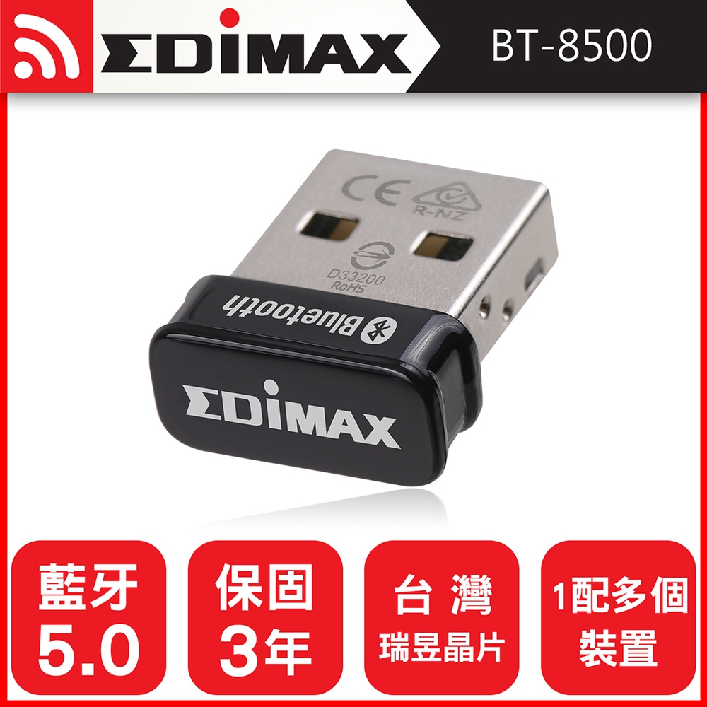 內容簡介 EDIMAX 訊舟 BT-8500 USB藍牙5.0收發器 --真藍牙5.0,通過BQB認證-- “BT-8500 USB藍牙5.0收發器”真藍牙5.0 通過BQB認證,使用台灣瑞昱晶片,比起一般藍牙收發器,可以一配多個裝置。更穩定完善的無線連接,讓您體驗前所未有的感受。 帶有 EDR 的新型藍牙 5.0 可讓數據速率以 3Mbps 的速度運作,因此可以實現比藍牙 4.2 更高的數據速率。藍牙 5.0 的範圍最大為40公尺,是藍牙 4.2 範圍的 4 倍。您可以使用藍牙 5.0 在Windows 或 Linux 作業系統的電腦,享受藍牙音響、耳機、鍵盤、滑鼠、遊戲搖桿、印表機、平板、手機以及任何具備藍牙傳輸的裝置等等。隨著物聯網的擴展,藍牙 5.0 將擴展在我們日常生活中,使用在更多不同的設備上。 強大的相容性,能與藍牙設備相容並配對,例如藍牙耳機、音響、遊戲機、鍵盤和滑鼠、印表機、智慧型手機、平板…等,並向下相容版本 v2.1 v3.x v4.x。 小巧的 USB 收發器插上後就幾乎忘了它的存在,非常適合任何使用者在家、旅行或公司中使用。 完美結合 Bluetooth® BR EDR和低功耗 BLE(Bluetooth Low Energy)收發器。對於 BR EDR 允許有多個鏈接。商品特色: ◆真藍牙5.0,通過BQB認證,更穩定無線連接◆台灣瑞昱晶片,可以一配多個裝置 ◆傳輸速率更快,覆蓋範圍更遠◆小巧時尚設計,隨插即忘◆完美結合 Bluetooth® BR EDR和低功耗 BLE 收發器 對於 BR EDR 允許有多個鏈接。 注意事項: .此產品無線傳輸的最大速度乃依據無線網路標準規範,實際數值資料 與覆蓋範圍則依據實際網路環境而有所不同。.此產品之規格、功能或外觀等資訊,可能因產品改良而變更, 請以實際銷售產品或以訊舟原廠資訊為主。 轉載警示: 自民國108年6月1日起(含追溯既往),鈞嵐(立嵐)企業有限公司之 商品圖片、影片或鈞嵐(立嵐)企業有限公司文字及LOGO, 任何客戶或用戶需轉載刊登任何圖片、文字、影片 皆需經過鈞嵐(立嵐)書面同意,如有需求請與鈞嵐(立嵐)客服中心接洽聯絡。 若任何未經鈞嵐(立嵐)同意即任意轉載刊登者, 我司將進行相關智慧財產著作權與商標權及商業法的追訴權利。