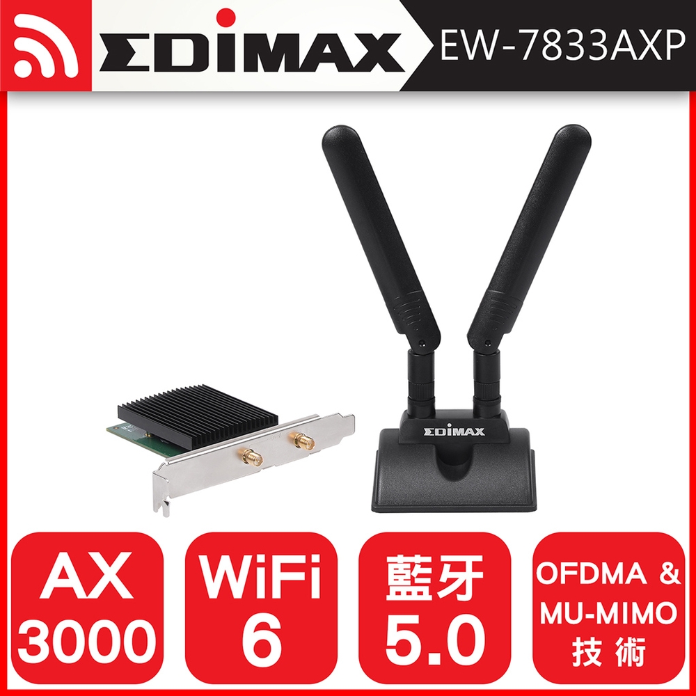 內容簡介 EDIMAX 訊舟 AX3000 Wi-Fi 6 + 藍牙5.0 PCIe 無線網路卡 --新世代 Wi-Fi 6 標準,享受極速快感-- 您想體驗網路連接最新技術嗎? EDIMAX EW7833APX 採用 Intel最新的 ax11 Wi-Fi 6 晶片,將其嵌入到一張小小的 PCIe 卡片中,只需將其插入 PCIex1 插槽中,能讓桌上型電腦的無線通訊能力和可靠度立即提昇到卓越的雙頻 AX3000 Wi-Fi 性能。 新世代 Wi-Fi 6 標準,具有更高的傳輸效率。超高性能Wi-Fi 速度高達近 3000Mbps,比11AC更快2.5倍速度,再繁重的資料都能輕鬆處理,更有效率。不僅如此,還擁有 OFDMA 和 MU-MIMO 技術,可在多個Wi-Fi設備上可以同時傳輸資料,充分利用頻寬,減少設備傳輸等待時間,更快速減低延遲。 ※上述 Wi-Fi 速度是2.4Ghz和5Ghz的組合,速度也可能會因測試環境 而有所不同 同時提供 2.4GHz 和 5GHz 來優化Wi-Fi連接速度,以確保無干擾的性能。當您正享受高流量影片或在 5GHz 頻段上玩線上遊戲時,2.4GHz 可以同時處理其他任務,例如電子郵件、線上聊天或瀏覽網頁。 EW-7833APX 還具備了藍牙5.0,與以前的藍牙4.2標準相比,藍牙5.0具有更快更穩定的連接,且更大的覆蓋範圍。強大功能集於一體,讓您更省心,無論娛樂或商務效率全到位。 除此之外,支援 64 128-bit WEP, WPA TKIP 和 WPA2 AES(個人型或企業型驗證)。更支援最新的 WPA3 安全性加密驗證,讓您使用無線更加放心。 擁有外接式天線設計,再輔以磁吸式延伸底座讓天線直接磁吸在OA或機殼,就可依環境調整天線位置到最適當的高度和角度。 EW-7833APX 可安裝於 PCIe x1 或 PCIe x4 插槽,且另標配短擋板,可安裝於更小型的PC主機中。且大型散熱片設計,將運作產生的熱透過散熱片將其散去,確保長時間使用的穩定性不熱當。商品特色: ◆新世代 Wi-Fi 6 標準,802.11ax Wi-Fi 具有更高的傳輸效率◆高達近 3000Mbps Wi-Fi 速度,再繁重的資料都能輕鬆處理◆符合 IEEE 802.11a b g n ac ax 標準◆OFDMA 和 MU-MIMO 技術,在多個Wi-Fi設備上可以同時傳輸資料◆藍牙 5.0功能,更快的速度和更遠的距離◆外接式天線設計,再輔以磁吸式延伸底座讓天線直接磁吸在 OA或機殼,就可依環境調整天線位置到最適當的高度和角度◆支援 64 128-bit WEP,WPA TKIP 和WPA2 AES(個人型或企業型驗證)◆支援最新的 WPA3 安全性加密驗證,讓您使用無線更加放心◆大型散熱片設計,將運作產生的熱透過散熱片將其散去,確保長時間使用 的穩定性不熱當◆可安裝於 PCIe x1 或 PCIe x4 插槽◆另標配短檔版,即可安裝於更小型的PC主機中 注意事項: .此產品無線傳輸的最大速度乃依據無線網路標準規範,實際數值資料 與覆蓋範圍則依據實際網路環境而有所不同。.進階設定,操作方式請參照包裝內附CD使用手冊。.此產品之規格、功能或外觀等資訊,可能因產品改良而變更,以實際銷售 產品為主,恕不另行通知。 轉載警示: 自民國108年6月1日起(含追溯既往),鈞嵐(立嵐)企業有限公司之 商品圖片、影片或鈞嵐(立嵐)企業有限公司文字及LOGO, 任何客戶或用戶需轉載刊登任何圖片、文字、影片 皆需經過鈞嵐(立嵐)書面同意,如有需求請與鈞嵐(立嵐)客服中心接洽聯絡。 若任何未經鈞嵐(立嵐)同意即任意轉載刊登者, 我司將進行相關智慧財產著作權與商標權及商業法的追訴權利。