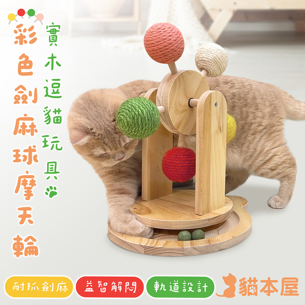貓本屋 彩色劍麻球摩天輪 實木逗貓玩具