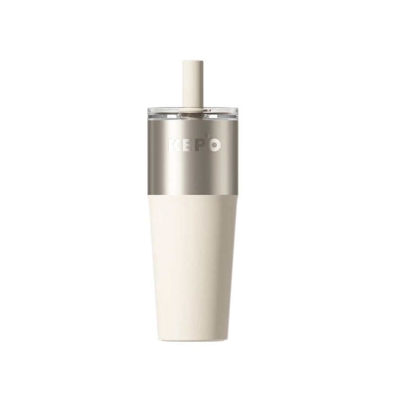 KEPO LQ 700ml KC014 T型吸管杯 316L不鏽鋼內膽-珍珠白