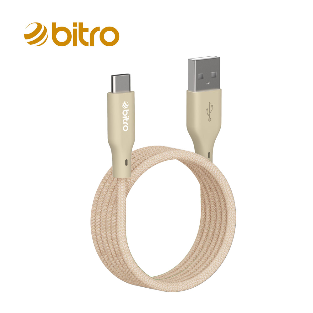 bitro BC200AC USB-A to USB-C 柔韌編織傳輸快充線2M 台灣製造 奶茶杏
