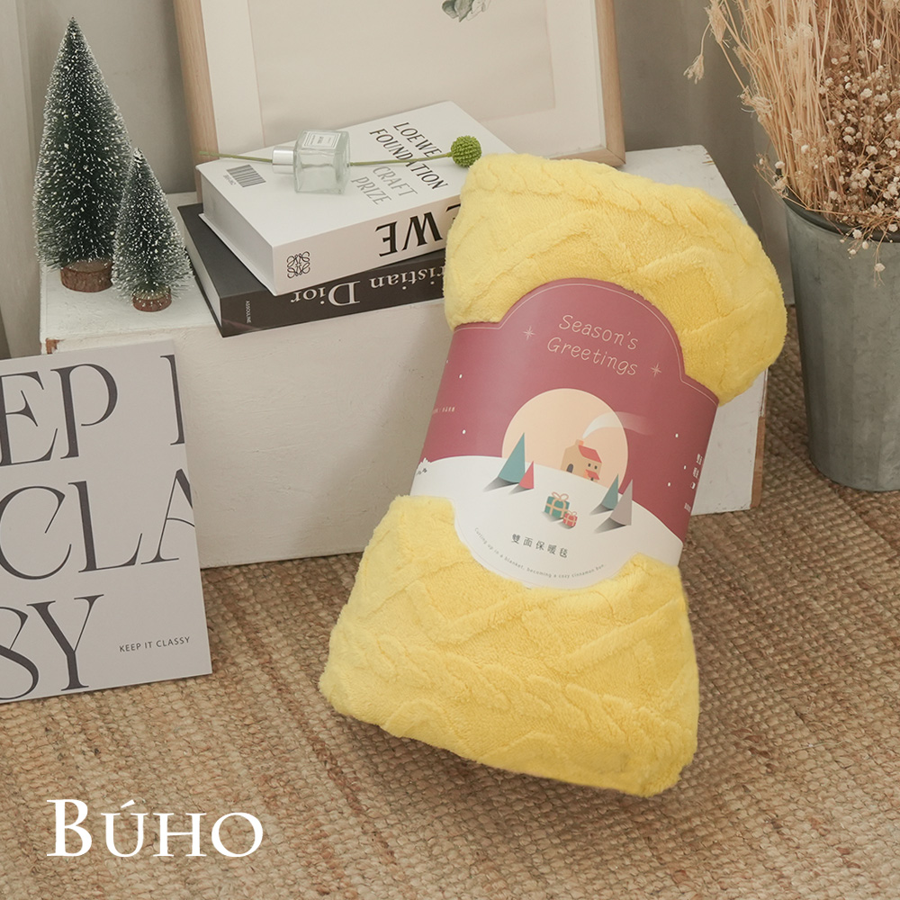 | 商品名 / | 【BUHO布歐】輕奢質感素色雕花牛奶絨x羊羔絨雙層保暖毯 暮冬黃 |