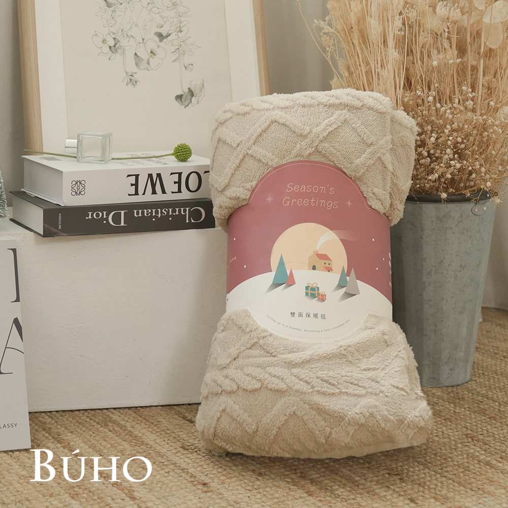【BUHO布歐】輕奢質感素色雕花牛奶絨x羊羔絨雙層保暖毯 燕麥奶