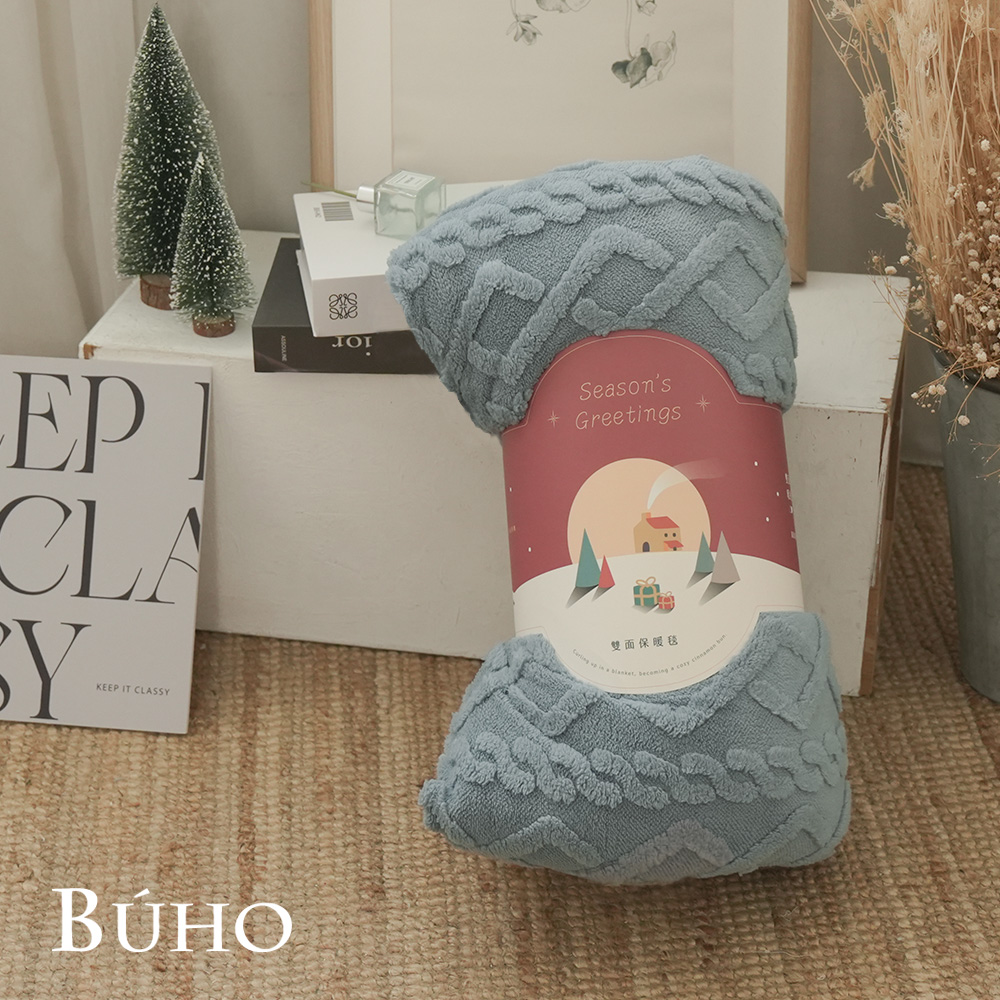 | 商品名 / | 【BUHO布歐】輕奢質感素色雕花牛奶絨x羊羔絨雙層保暖毯 迷霧藍 |