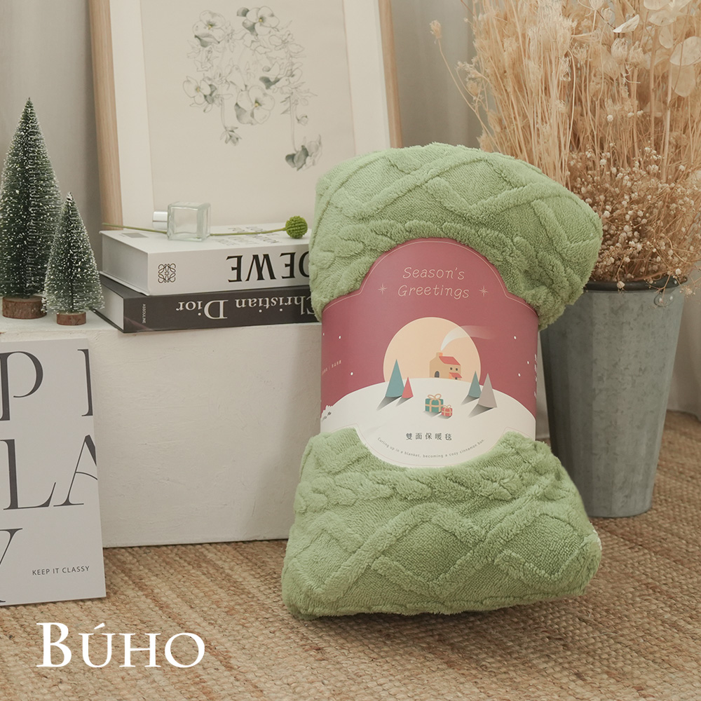 | 商品名 / | 【BUHO布歐】輕奢質感素色雕花牛奶絨x羊羔絨雙層保暖毯 暮光綠 |