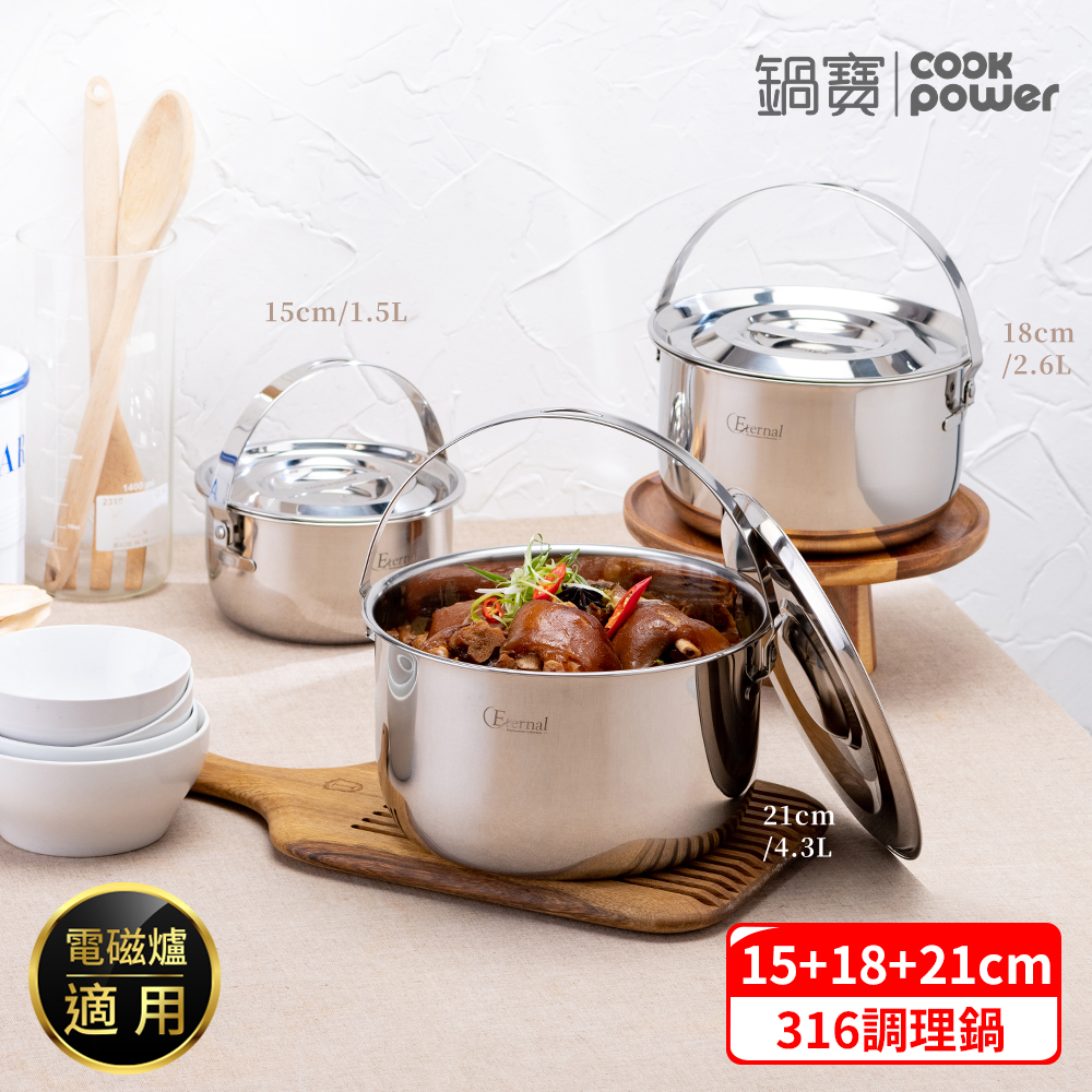 【鍋寶】 Eternal系列316不鏽鋼調理鍋3鍋組-IH 電磁爐適用(15+18+21) 含蓋