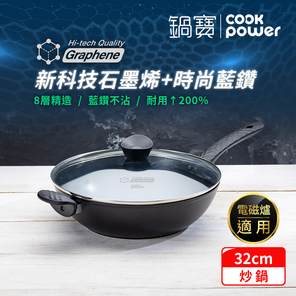 【鍋寶】石墨烯藍鑽IH不沾鍋深炒鍋32cm 電磁爐適用(含蓋)