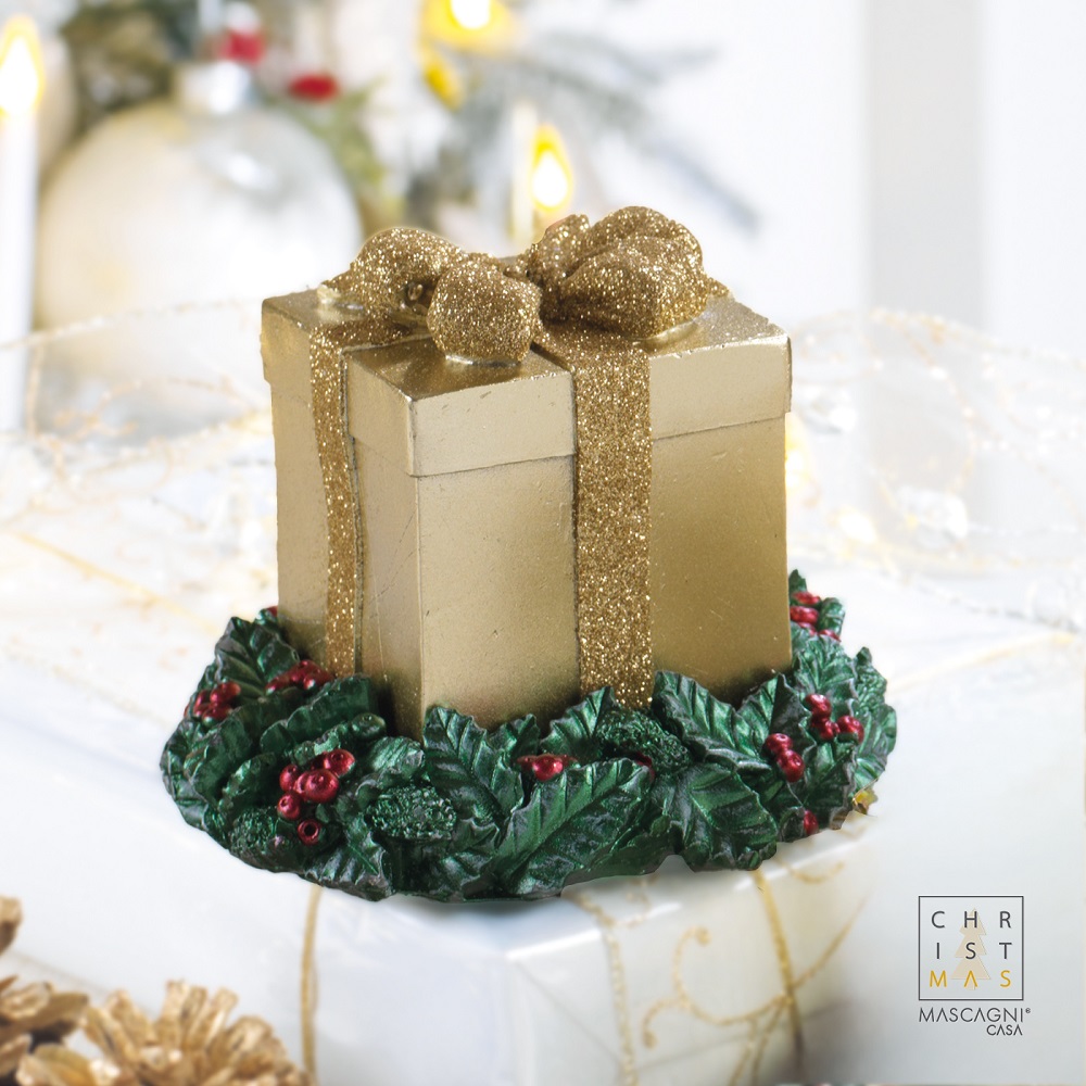 義大利MASCAGNI CASA 聖誕禮物盒造型蠟燭 1入 金 20BC2889