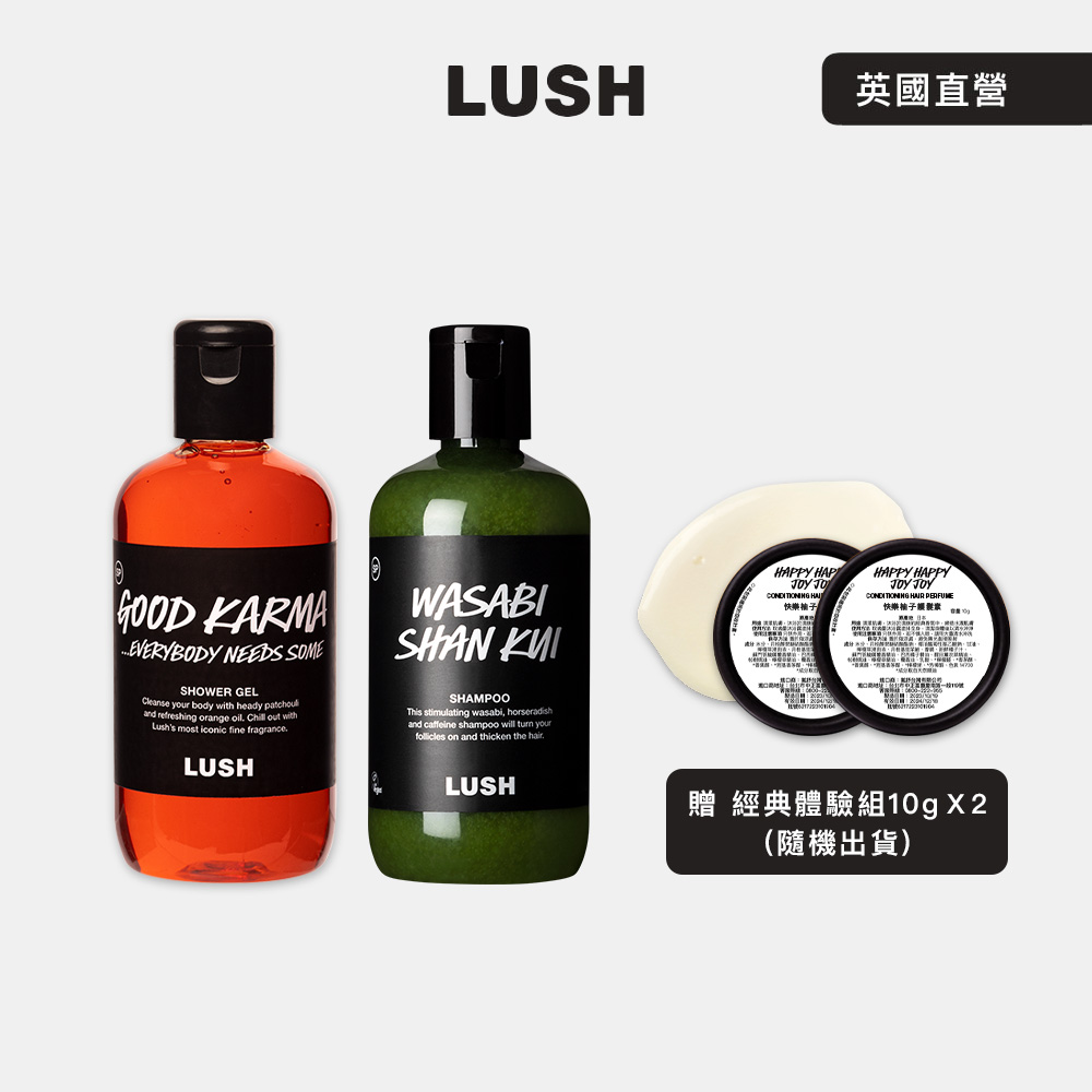 內容簡介 組合內容:山葵洗髮露 65g和諧心靈沐浴露 65gLUSH經典體驗組 20g(隨機出貨)山葵洗髮露蘊含可活絡頭皮的新鮮辣根、咖啡因粉與薄荷醇,以及強化滋養髮根的初榨橄欖油,打造蓬鬆秀髮和諧心靈沐浴露沐浴在由廣藿香及橘子精油揉合而成的香氣中,享受 Lush 的經典香韻。使用方法:- 洗髮露:取適量洗髮露於濕髮上輕輕畫圈按摩,再以清水沖淨。- 沐浴露:取適量沐浴露塗抹全身,清潔身體後以清水沖淨。- 護髮素:洗髮後,取適量護髮素均勻塗於濕髮上,梳理好後稍待一會,再以清水沖淨。溫馨提醒:- LUSH 產品的製造與保存期限以「日 月 年」格式呈現,敬請於期限內趁新鮮享用!- 身體噴霧首次使用時,請先對空氣多按壓幾下,直到出現均勻噴霧,再噴在衣物或身體使用。