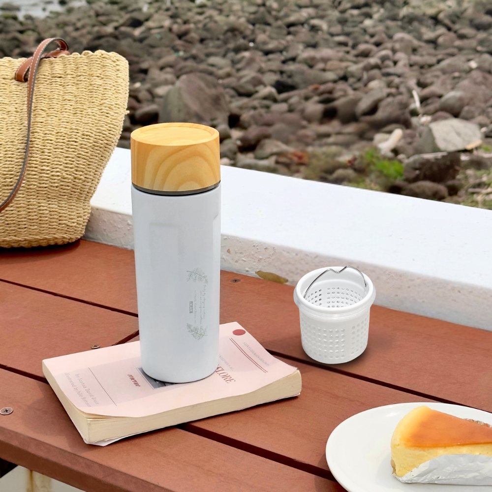 商品名 / | 【IKUK 艾可】 真陶瓷保溫杯-真瓷濾茶器茗茶保溫杯500ml(附真瓷濾茶器) 蕨葉白 500ml |