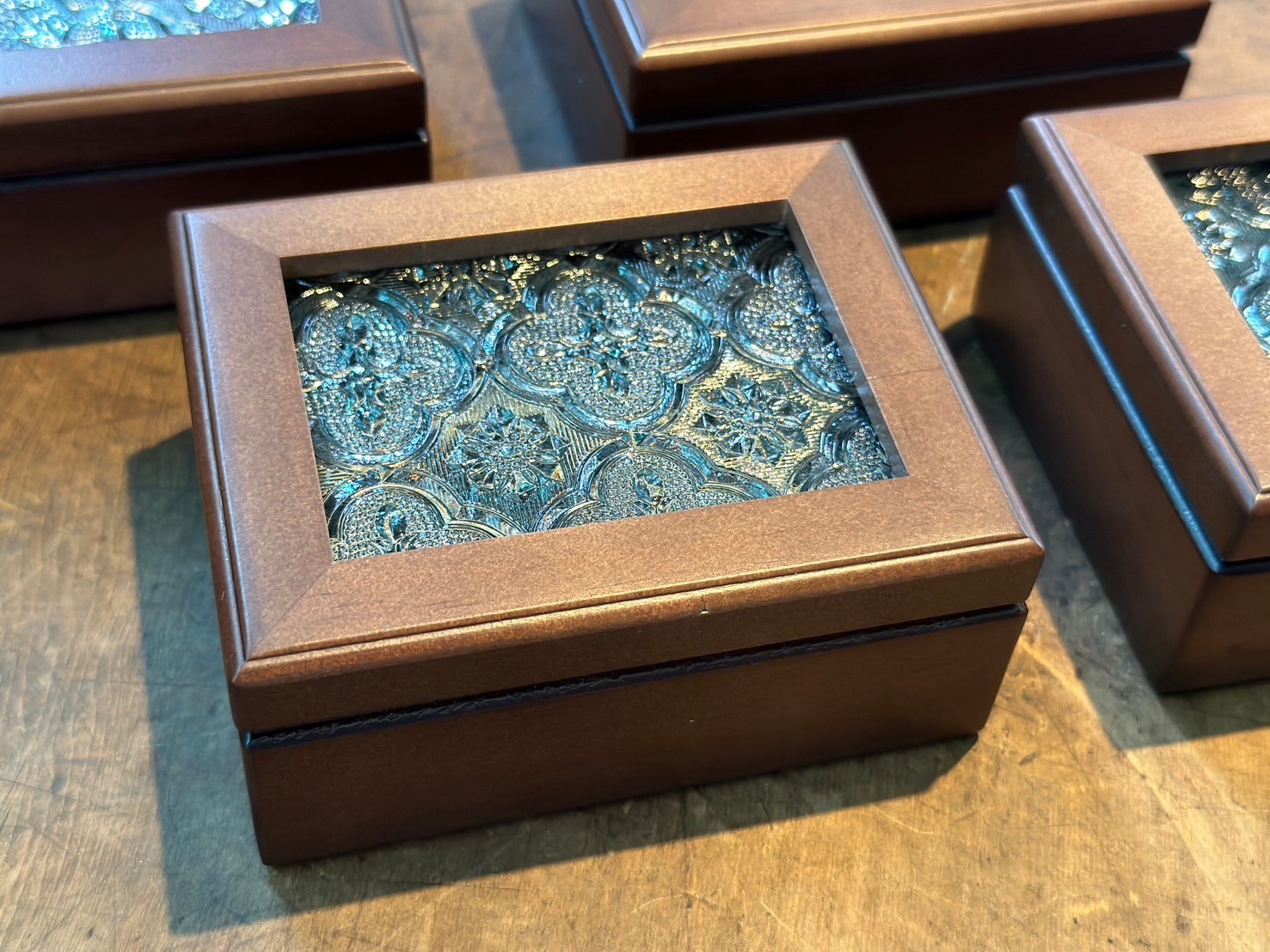 最佳賣點 : 每一個珠寶盒,都嵌入了一塊來自老房子的窗花玻璃。那些曾透進陽光、映出時光的玻璃,如今被細心保留、重新安置在你的生活裡。不只是收納盒,更是裝著回憶的容器,讓老物延續故事,陪你收藏生活的溫柔片刻。