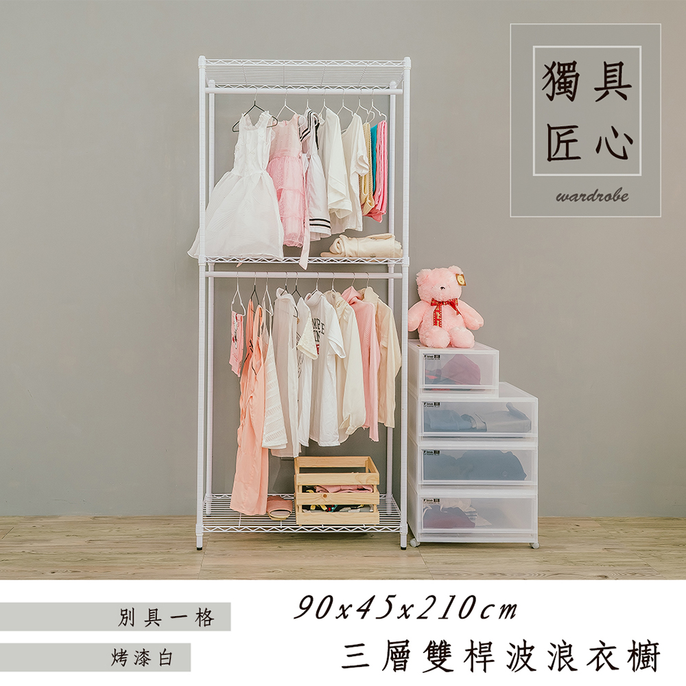 商品名 / | 【dayneeds】輕型 90x45x210公分 三層雙桿衣櫥 電鍍 |