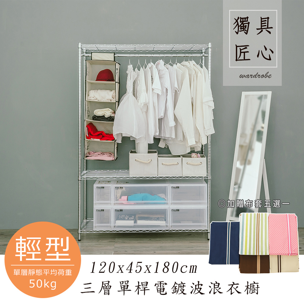 【dayneeds】輕型 120x45x180公分 三層單桿衣櫥 (含布套) 電鍍 深藍布套