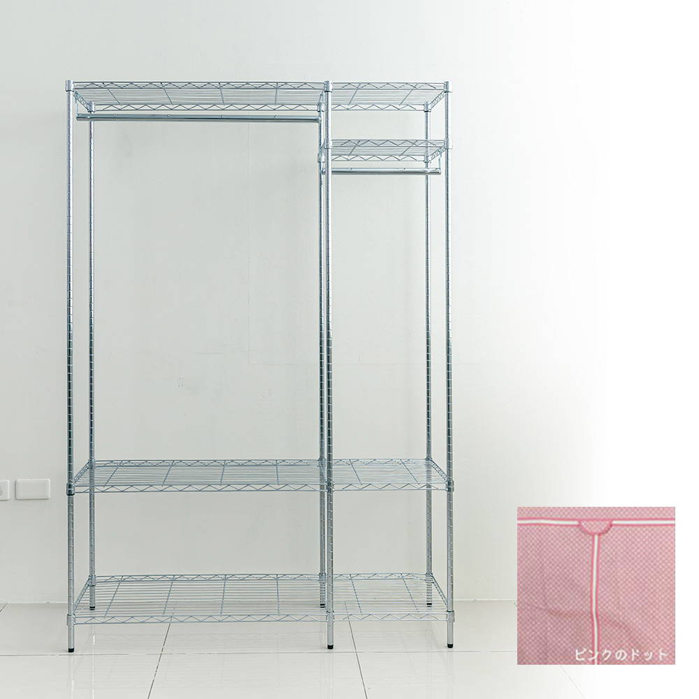 【dayneeds】120x45x180公分 (六分管徑) 四層(插管)大衣櫥 (贈布套) 粉紅點點布套