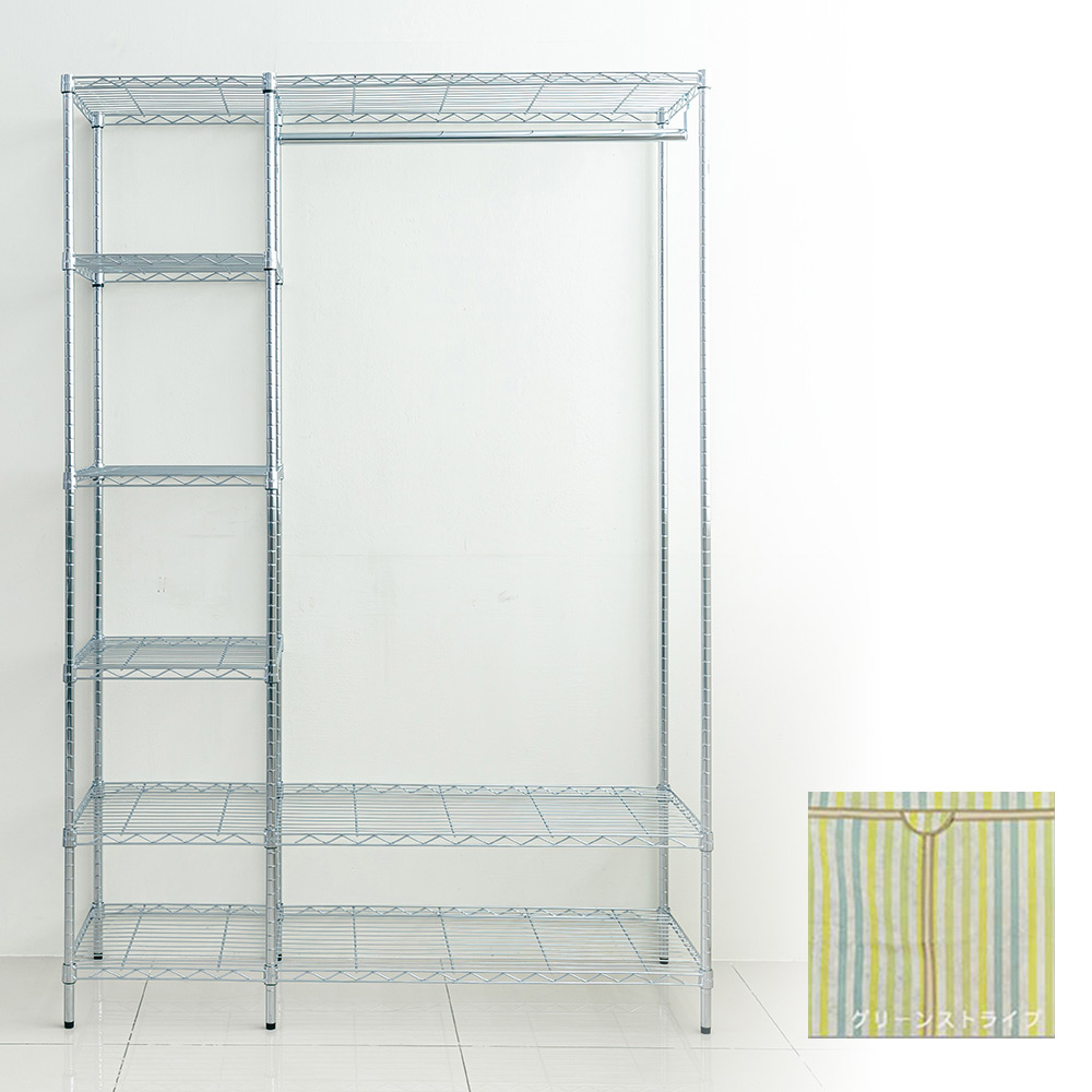 商品名 / | 【dayneeds】(六分管徑)電鍍(插管)六層單桿大衣櫥 (贈布套) 綠直條紋布套 |