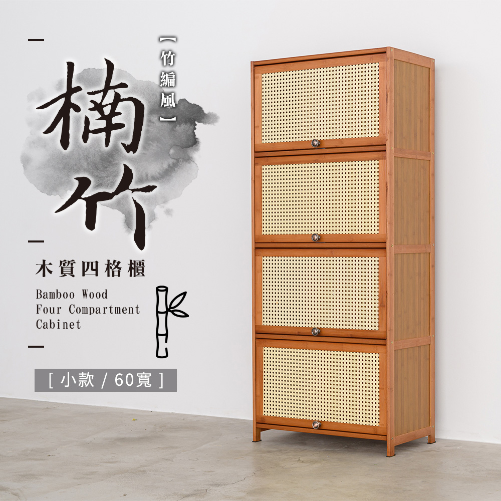 【dayneeds】竹編風-楠竹木質四格櫃 小款60cm寬