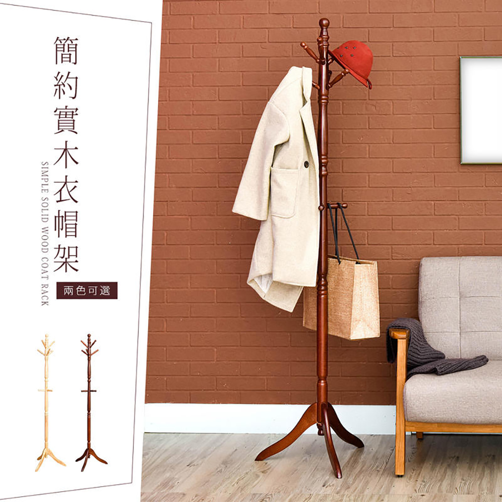 【dayneeds】簡約實木衣帽架 櫻桃木色