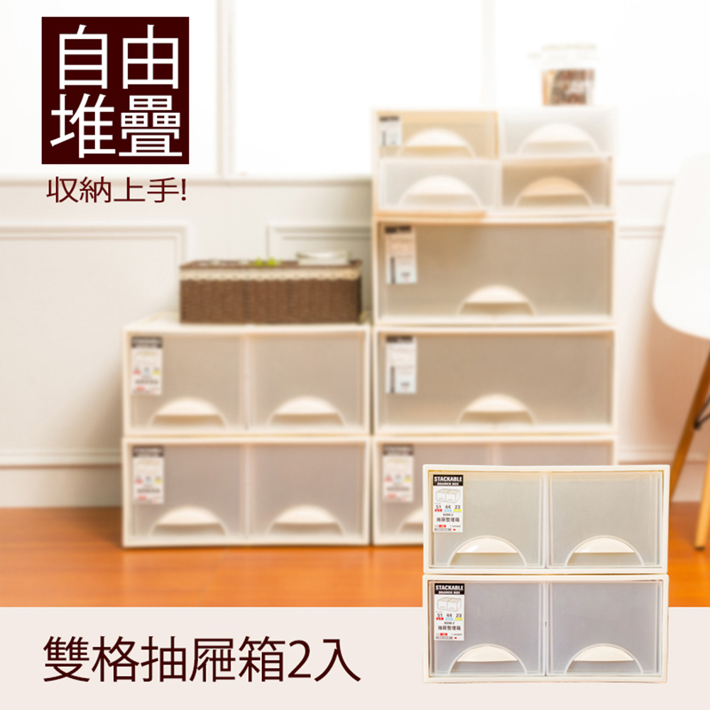 【dayneeds】極簡澈亮可自由堆疊雙格抽屜 二入