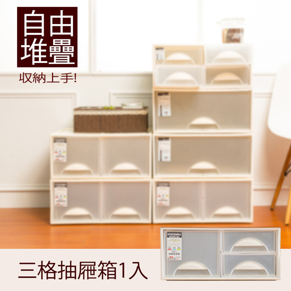 【dayneeds】極簡澈亮可自由堆疊三格抽屜 一入