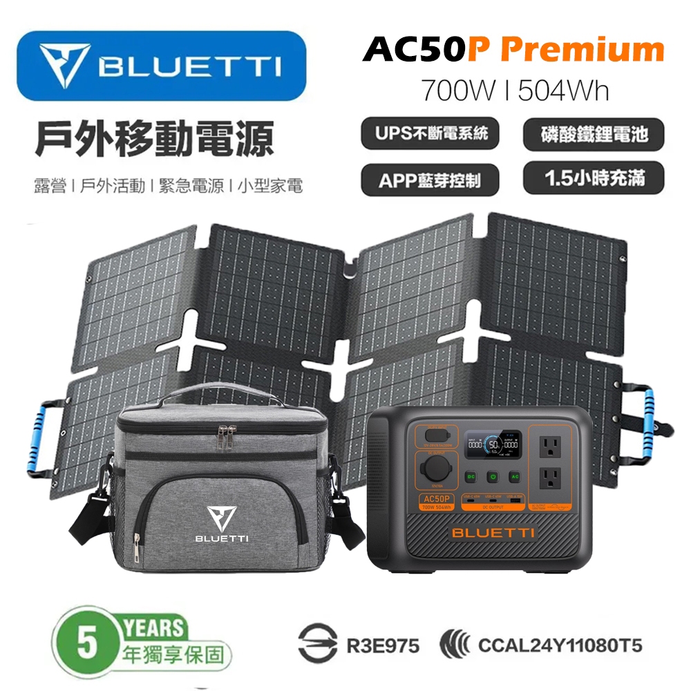 內容簡介 高效、輕巧、強大BLUETTI AC50P 電站是您可以在露營團體中炫耀的東西。它具有 504Wh 容量和 700W 高功率輸出,確保您擁有充足的能量來運行必需品。先進的AI-BMS智慧優化能耗,最大限度地延長運行時間和提高效率。可靈活地透過太陽能板或電池組充電,您可以不間斷地享受持續的電力。 AC50P 重量輕且便於攜帶,是您戶外探險甚至緊急情況下的首選電源。三重技術延長電池壽命BLUETOPUS BMS:這款由人工智慧驅動的電池管理系統可優化能源利用率,確保您整個旅程的電力供應持續穩定。日間太陽能:白天使用太陽能板充電,讓您為設備供電,同時補充電池電量。精緻設計,卓越性能AC50P 擁有業界領先的 700W 額定功率,比同類產品高出 200W,可輕鬆為更多設備供電。啟動功率提升模式*,可驅動高達 1,200W 的設備,例如水壺、電飯煲等。*非常適合運行 1,200W 以下的純電阻負載。快速安全充電透過 Turbo Charging,AC50P 僅需 50 分鐘即可充電至 80%,80 分鐘即可充滿電。當您享用美食或收拾行裝時,您的設備將立即準備就緒。此外,整合的 AI-BMS 不斷管理充電和放電狀態,以優化充電過程並最大限度地延長電池壽命。您的安全,我們的首要任務AC50P 使用更安全的 LiFePO4 電池,使用壽命長達 10 年。它可以在 -20°C 至 40°C 的溫度範圍內平穩運行,具有抗過熱能力,並且可以在極冷條件下安全使用。睡眠級噪音,安睡一夜讓自己沉浸在大自然中,不受惱人噪音的干擾。 AC50P 運作時噪音水平極低,僅 45dB – 與現代冰箱一樣安靜。現在,您可以不受干擾地聆聽大自然的舒緩聲音,或在帳篷裡安然入睡,而不會受到嗡嗡聲的干擾。靈活選擇您喜歡的任何充電方式同時為多達 6 台設備供電AC50P 不僅僅是一個發電站;它是您的個人能源中心。它配備一系列插座,包括 2 個 700W 交流電源插座、2 個 65W USB-C 端口、1 個 15W USB-A 端口和 1 個 120W 點煙器端口,確保您的離網生活不會錯過任何節拍。智慧電力,智能生活透過直覺的 BLUETTI 應用程序,您可以掌控 AC50P 的一切。無論您是在家中還是在野外,您都可以監控即時電源使用情況和電池電量,自訂充電設定以獲得最佳效能,甚至更新韌體以獲得增強功能。 Bluetti AC50P 戶外儲能電站 額定功率: 700W,動力提升功率高達 1200W電池容量: 504Wh電池類型: LiFePO₄ 磷酸鐵鋰, 循環超過 3000 次電量還可保持80%,壽命達10年設備尺寸: 28cm x 20cm x 22cm重量:6.9KGDC可輸出 2 x 65W USB-C 端口 , 1 x 15W USB-A 連接埠 , 1 x 12V 10A 點煙器連接埠 , 1 x 無線充電輸出, 高達 15W交流電輸出:最多可同時為 2 台設備供電太陽能板充電時間:約 3 小時(在最佳條件下)透過交流AC充電: 輸入功率高達 600W,80分鐘充滿電渦輪快速充電:50 分鐘內可從 0% 充電至 80% 【商品保固】購買時請指名台灣公司貨:禾蓁發展企業有限公司享有保固5年BLUETTI 60W 便攜式太陽能板可提供 60W 太陽能,實現高效的太陽能吸收,相容於 BLUETTI Handsfree 1、Handsfree 2、AC2A 以及 USB-A、USB-C 電子設備。這款太陽能板採用單晶電池,可將高達 24.7% 的陽光轉換為可用電能,確保您即使在陰天也能保持充電狀態。採用持久的 ETFE 塗層,可防止刮擦和濺水(IP65 等級),非常適合露營、釣魚、遠足等。重量僅 1.4 公斤,折疊後尺寸為 23x21x7cm ,易於打包並隨身攜帶,可立即利用太陽能供電。BLUETTI 60W太陽能板、DC5521轉XT60連接器(1.2m)、登山扣×2