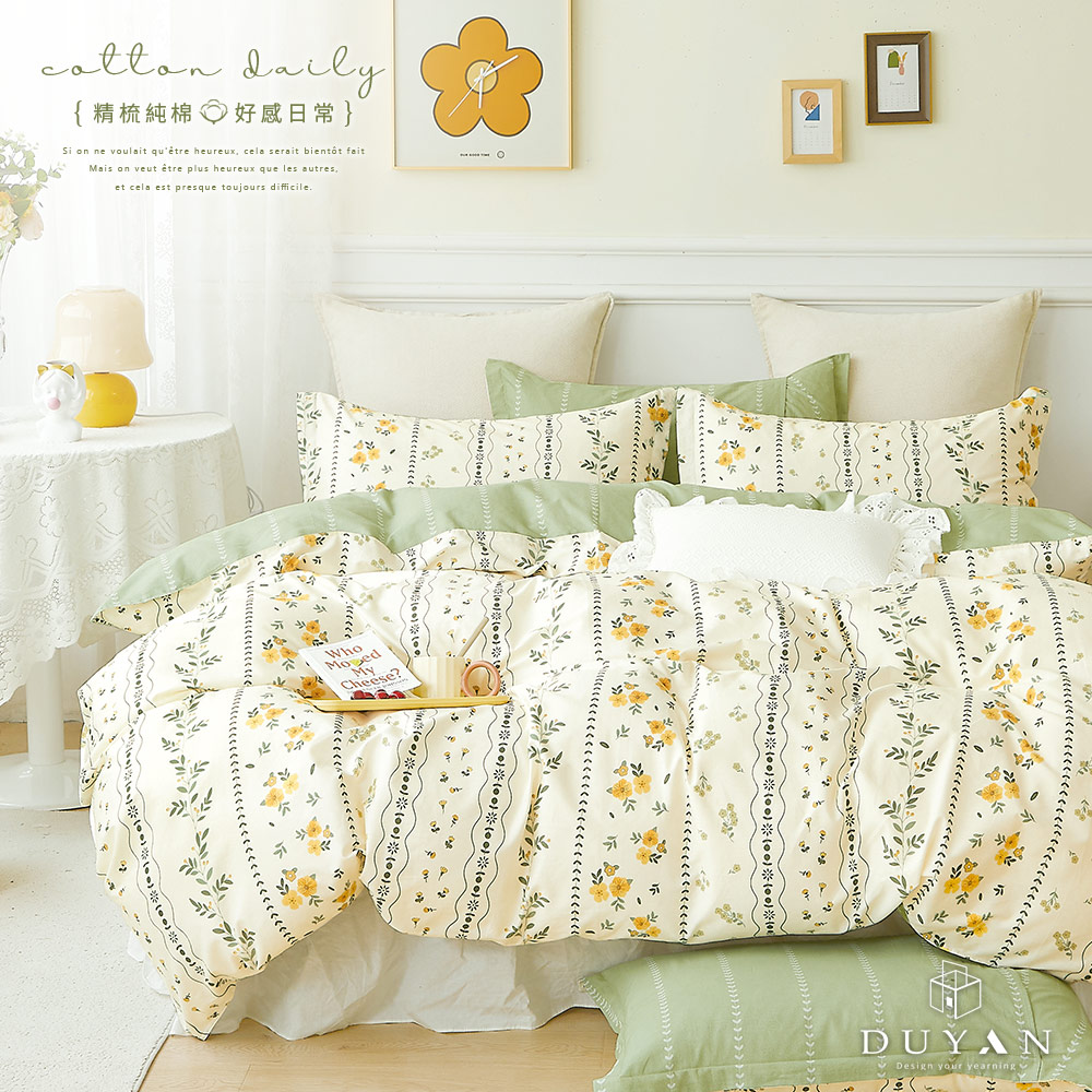 【DUYAN 竹漾】精梳純棉雙人四件式鋪棉兩用被床包組 台灣製 花晴綠藤