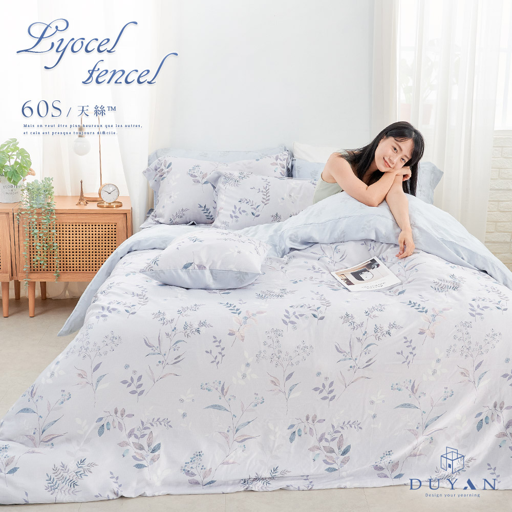 【DUYAN 竹漾】60支萊賽爾天絲雙人加大床包被套四件組 悠藍果子 台灣製