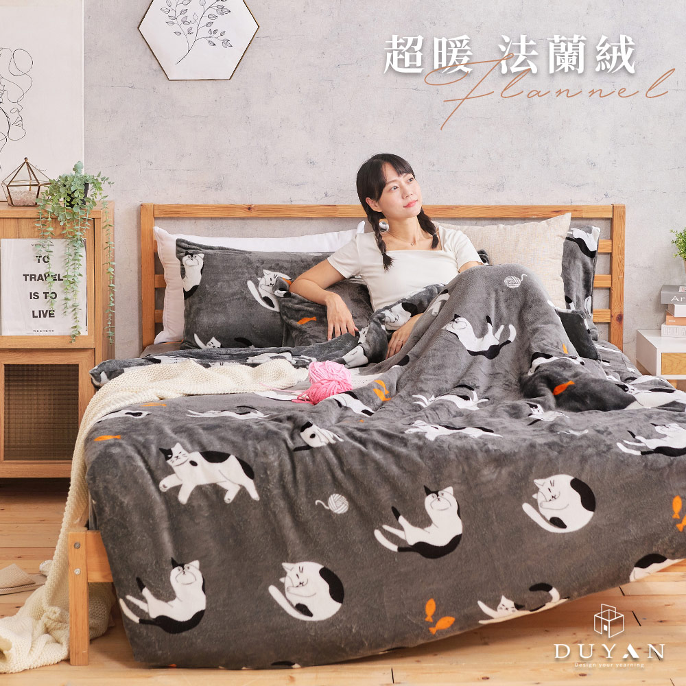 【DUYAN 竹漾】法蘭絨雙人加大四件式床包兩用毯被組 米魯可喵