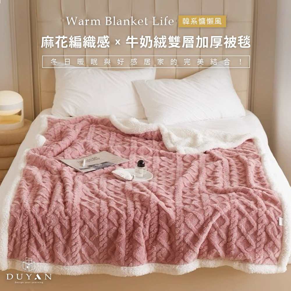 | 簡介 / | 【DUYAN 竹漾】韓系麻花牛奶絨 雙層加厚被毯 玫瑰棕:▪獨家加厚加密毯,蓄熱保暖度UP▪柔軟、暖Q的超舒適手感▪經典編織緹花設計,多色任選▪韓系奶油純色調,提升家中質 |