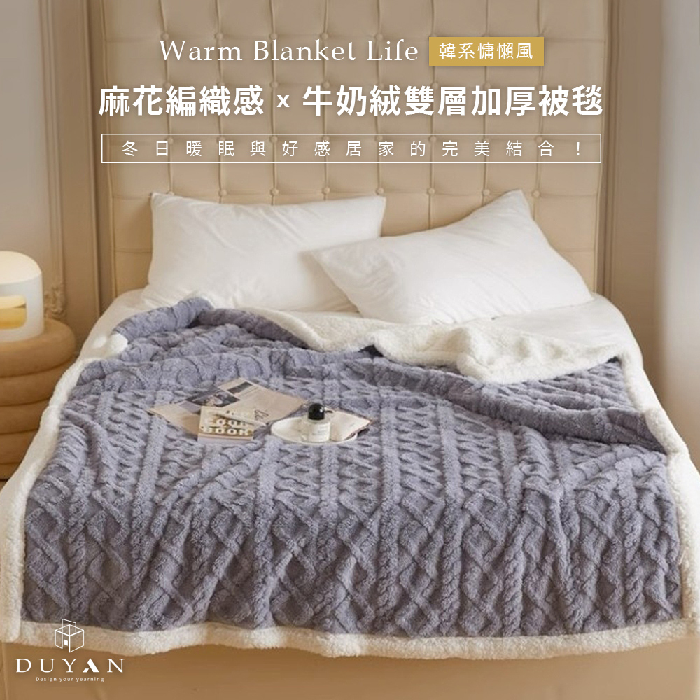 | 商品名 / | 【DUYAN 竹漾】韓系麻花牛奶絨 雙層加厚被毯 霧灰藍 |