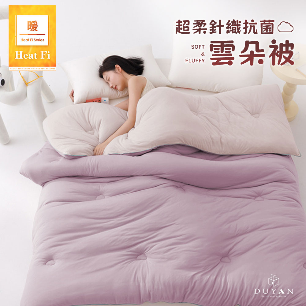 【DUYAN 竹漾】Heat Fi 超柔針織抗菌雲朵冬被(雙人) 淺櫻霧紫