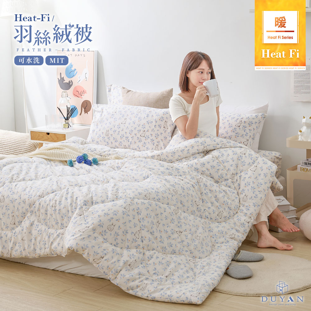 【DUYAN 竹漾】Heat-Fi 可水洗羽絲絨被 洋林覓兔 台灣製