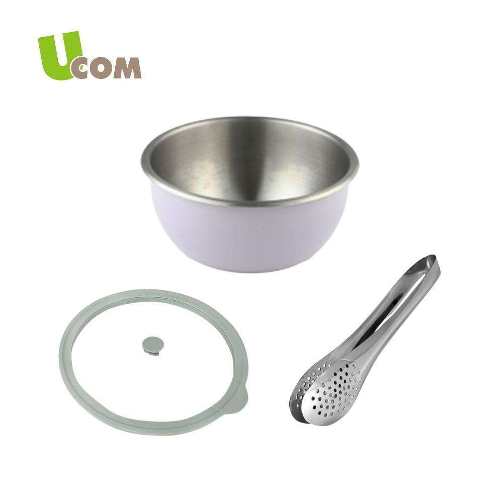 UCOM 可微波萬用調理盆紫16cm(含抗菌矽膠真空蓋) 贈不鏽鋼食品夾28cm