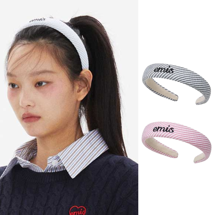 最佳賣點 : 是一款以泡泡紗條紋布料製作的髮箍,正面飾有Emis 刺繡LOGO作為設計亮點,不論日常或造型穿搭都能成為視覺重點。