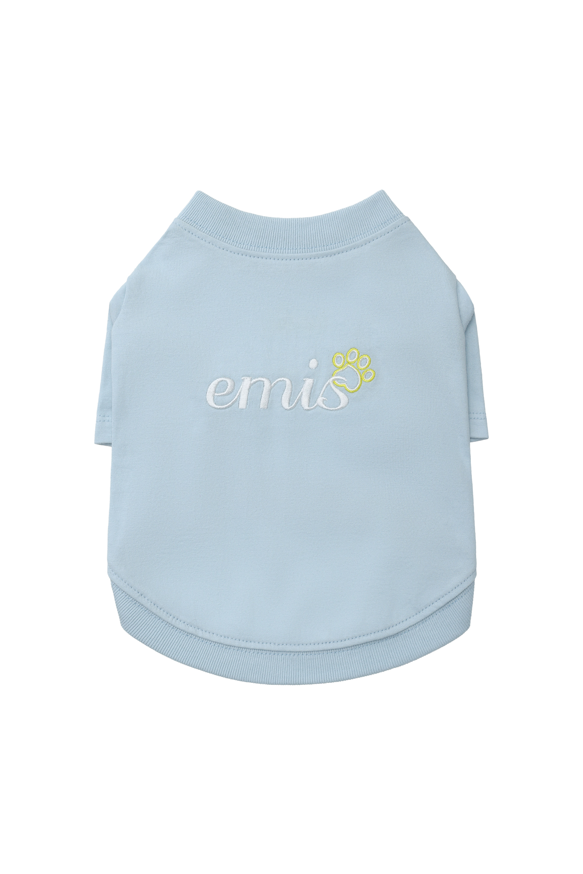 | 簡介 / | emis LETTERING LOGO T-SHIRT腳印刺繡棒球衣(PET系列) SKY BLUE 1:(PET)LETTERINGLOGOT-SHIRT是一款以舒適的棉質材質製作的寵物T恤,設計上以字母刺繡與肉球刺繡作為亮點 |