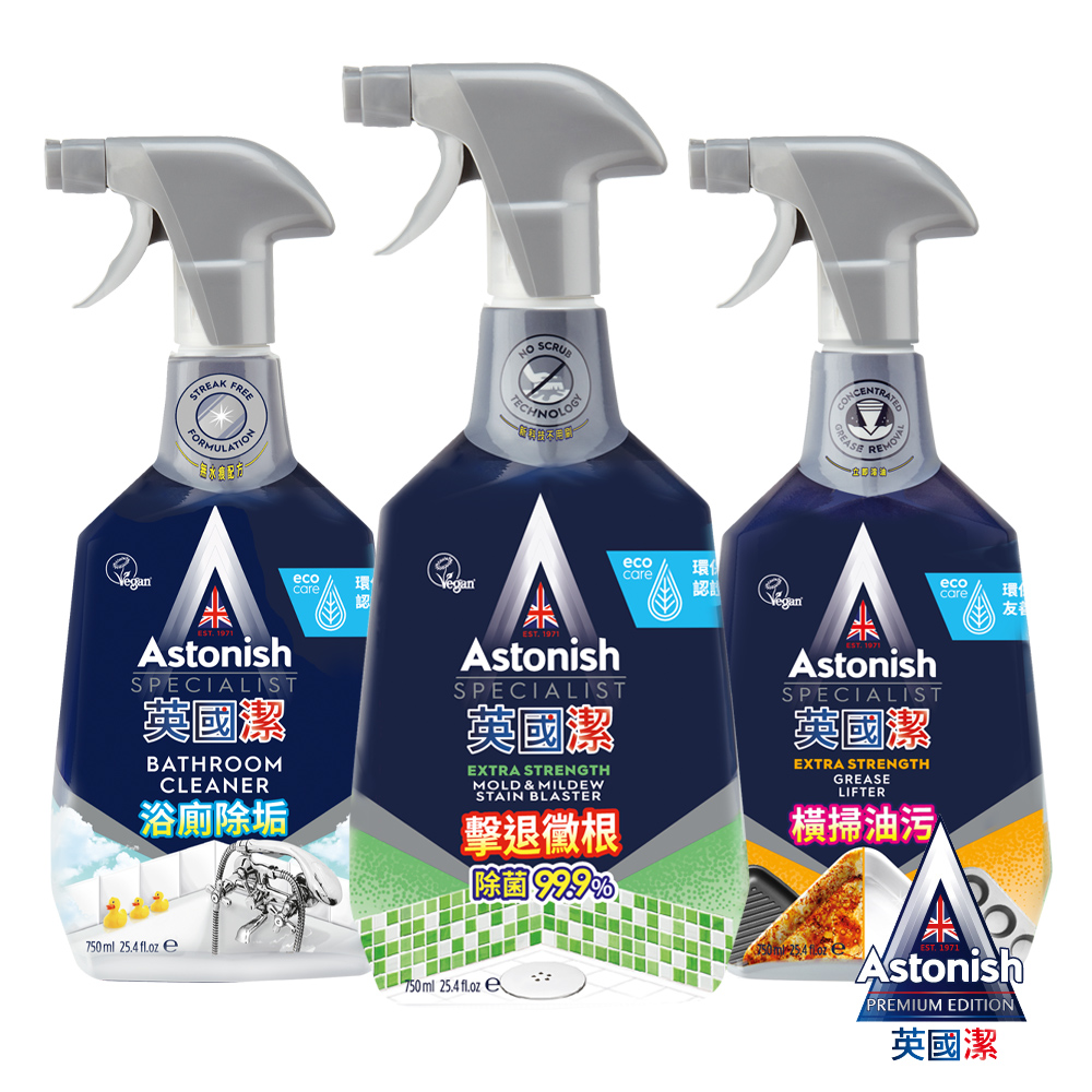 【Astonish英國潔】全方位清潔3入組(除黴+除油+浴廁):全方位清潔,廚房+浴室,一組搞定.瞬效除黴,去除陳年霉根.橫掃油污,迅速軟化頑強油漬,即終結髒汙.浴廁清潔,打 |