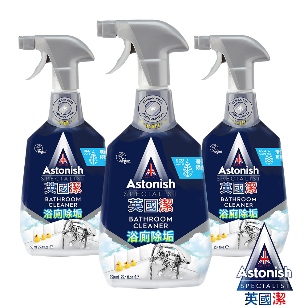 【Astonish英國潔】抑菌除汙浴廁清潔劑3入組(750mlx3):迅速打擊所有浴廁汙垢.去除水垢、皂垢、頑強汙垢、光亮無痕.適用於浴室磁磚、浴缸、水龍頭、洗手台、蓮蓬頭.請勿 |