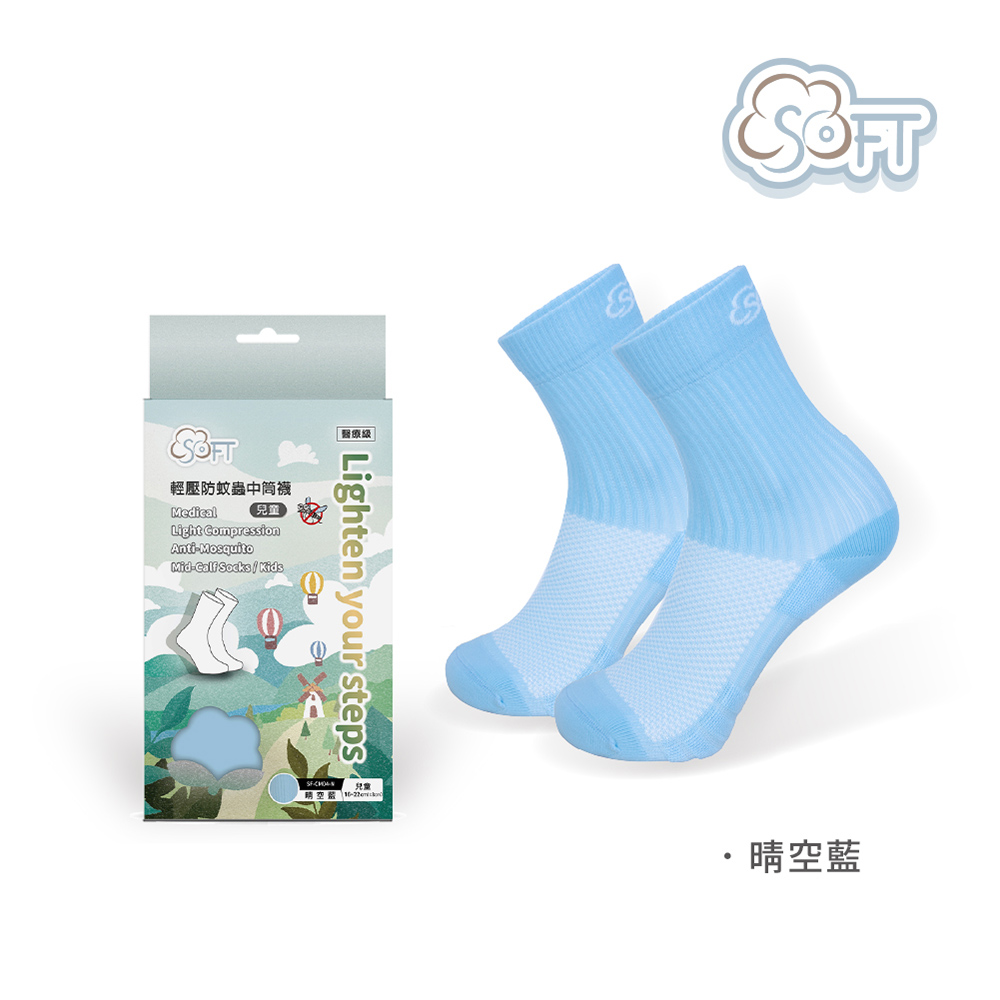 SOFT 醫療級 輕壓柔軟舒適防蚊襪 兒童款 晴空藍