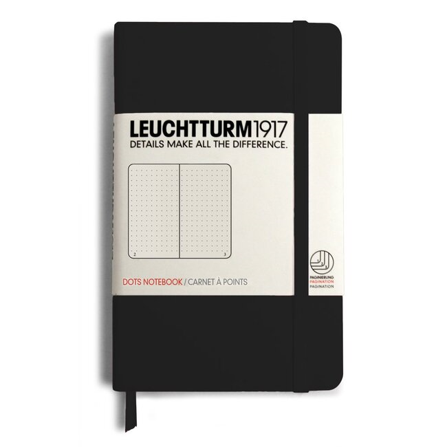 成立於1917年、來自德國的Leuchtturm1917,講究高品質和一致性,相信微小的細節可以帶來巨大的改變,Leuchtturm是德文 「燈塔」,希望藉由燈塔光明與堅定的意象,為你的生活守望,翻開燈塔筆記本書寫心情或記錄日常,指引你心之所嚮。Leuchtturm1917筆記本特色有:標誌性的綁書帶、雙條書籤帶、圓形頁角、編列頁碼、可隨手撕下的壓線頁、可收納紙條的收納層等,將筆記本的最大功用匯集一身,提供你最實用的書寫紙品!「Leuchtturm1917筆記本/口袋型/黑/點陣」~輕巧的大小,能放入口袋隨時攜帶,可攤平書寫的點陣內頁,有利於繪製圖表,整體設計維持一貫的簡潔風格,滿足使用者最實際的需求,讓每次書寫體驗都成為享受!商品規格名稱:方眼筆記本尺寸:9 X 15 X 1.5 cm材質:紙