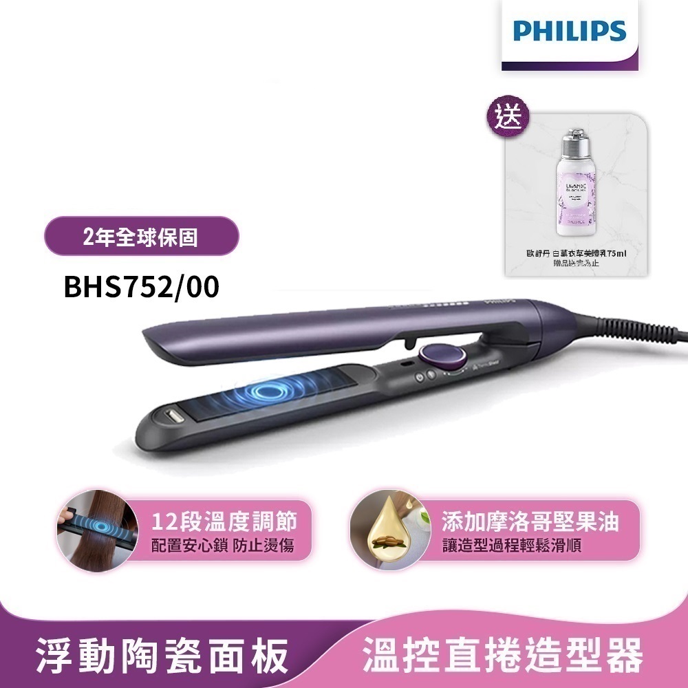 送美體乳【Philips飛利浦】官方直營 BHS752溫控護色水潤直捲兩用負離子美髮造型器(國際電壓)(贈品送完為止)