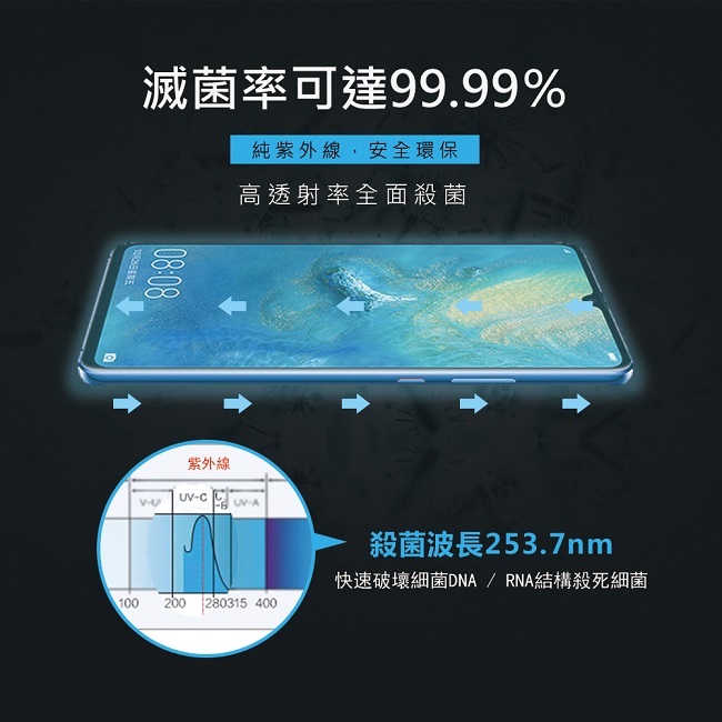 ●消毒盒可放入6.9吋以下手機。