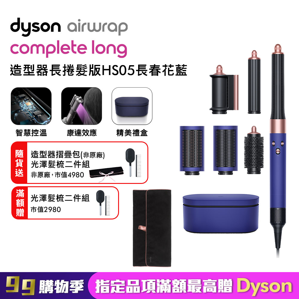 Dyson Airwrap™多功能造型器 HS05 長型髮捲版 長春花藍 (贈收納包+光澤雙梳組)