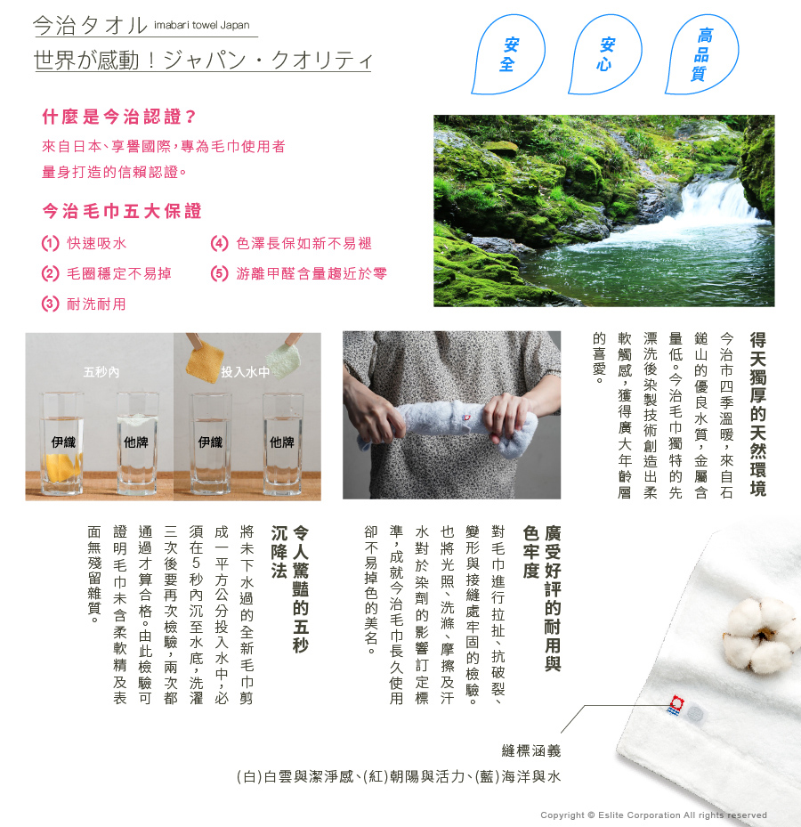 通過今治標準的優良吸水性,十分耐用且手感鬆軟舒適。精選日本傳統富祝福意涵之紋樣或花紋,以細膩講究的毛巾工藝編織出攜帶方便的日常手帕,除了賞心悅目外,耐得起反覆清洗使用,為生活帶來一縷溫柔美好。