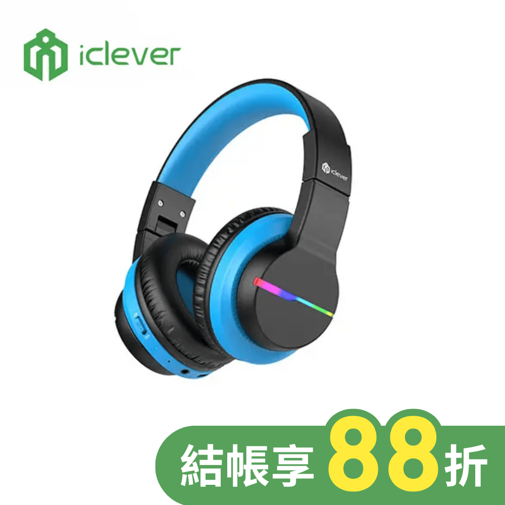 | 商品描述 | iClever BTH12炫光無線兒童耳機 黑色:3種音量限制完整保護聽力設計•LED燈光|彩色LED燈光條,一鍵切換•音量限制|74/85分貝音量限制,保護聽力•免提通話|內建麥克風, |