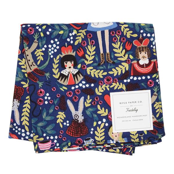 日本 Fine Gear x Rifle Paper 手帕 童話夢遊仙境 海軍藍